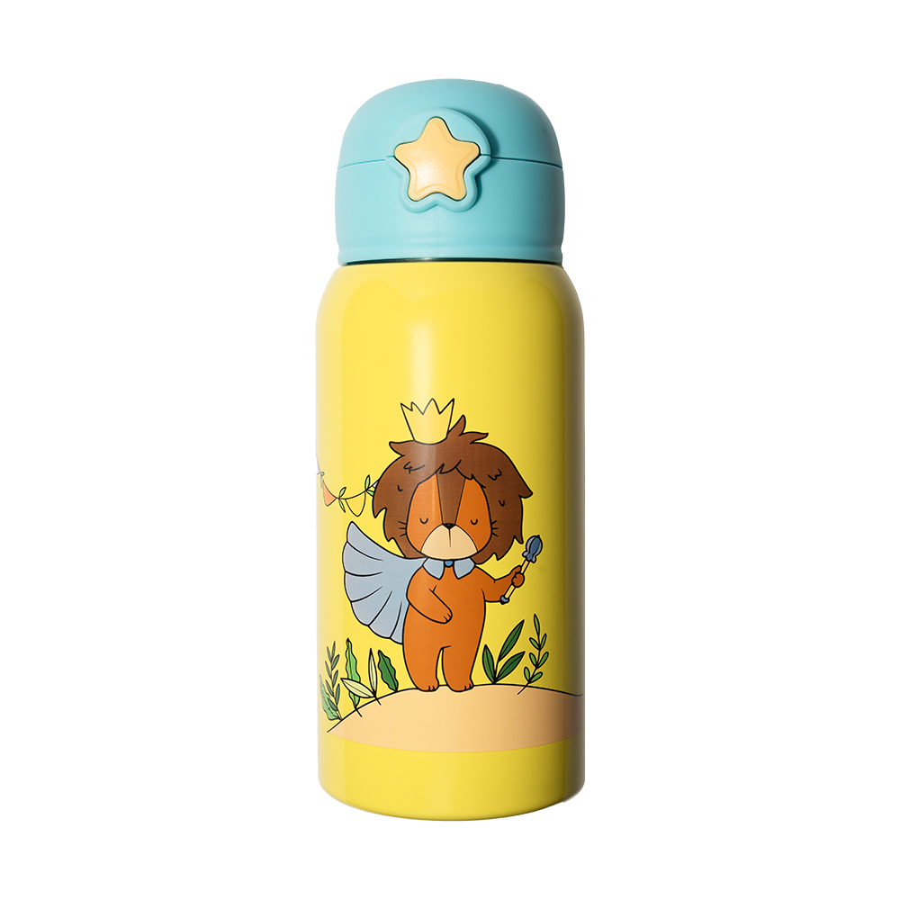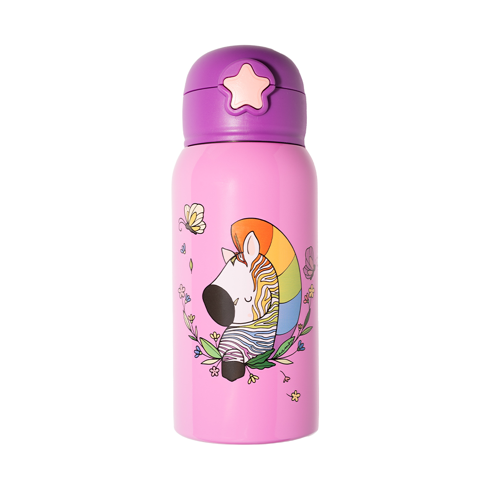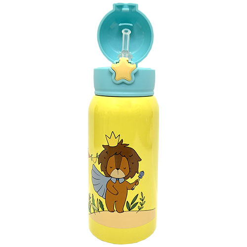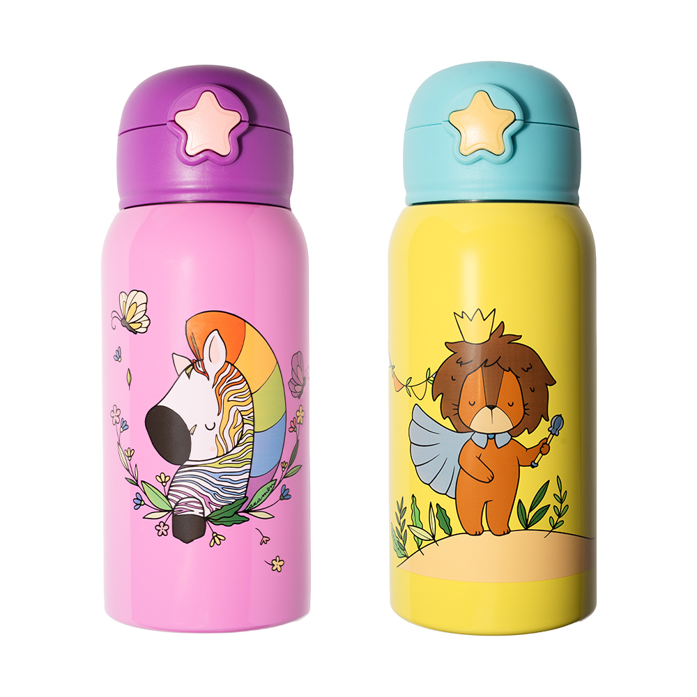 Akamon – Life in the jungle – Borraccia termica in acciaio, con cannuccia, 500 ml. 2 fantasie bambino (Leone) e bambina (Zebra). Mantiene freddo per 24 h e caldo per 12 h