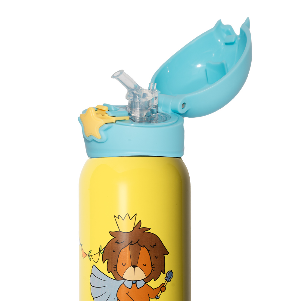 Akamon – Life in the jungle – Borraccia termica in acciaio, con cannuccia, 500 ml. 2 fantasie per bambini – Leone e Zebra. Mantiene freddo per 24 h e caldo per 12 h