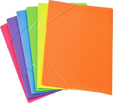Cartella con doppio elastico in PP fluo, 6 colori assortiti
