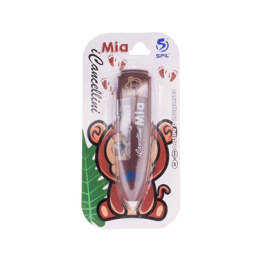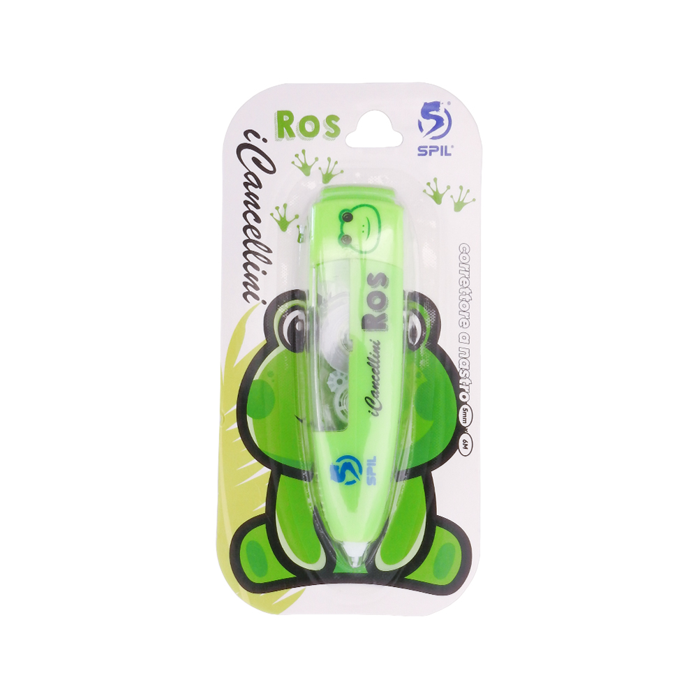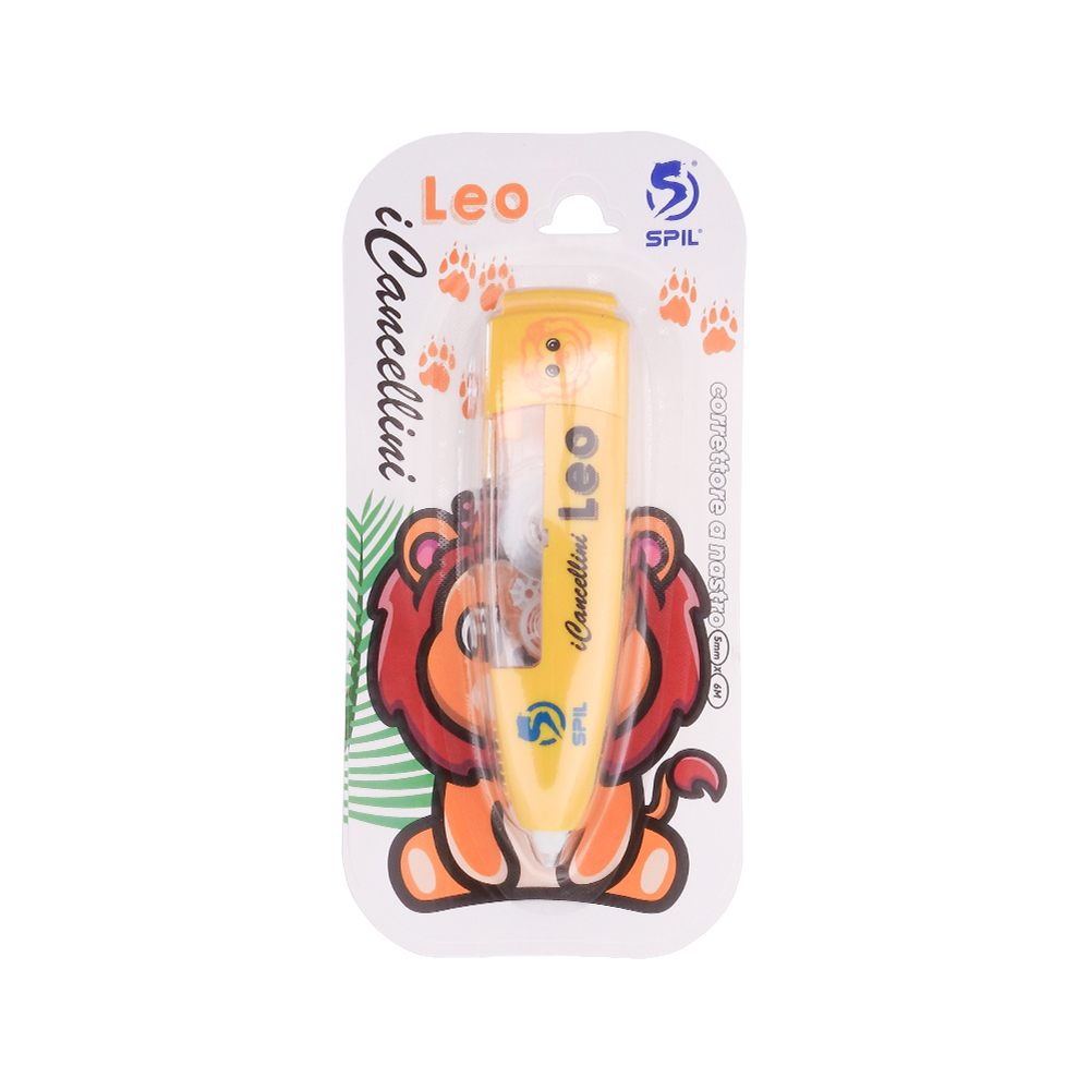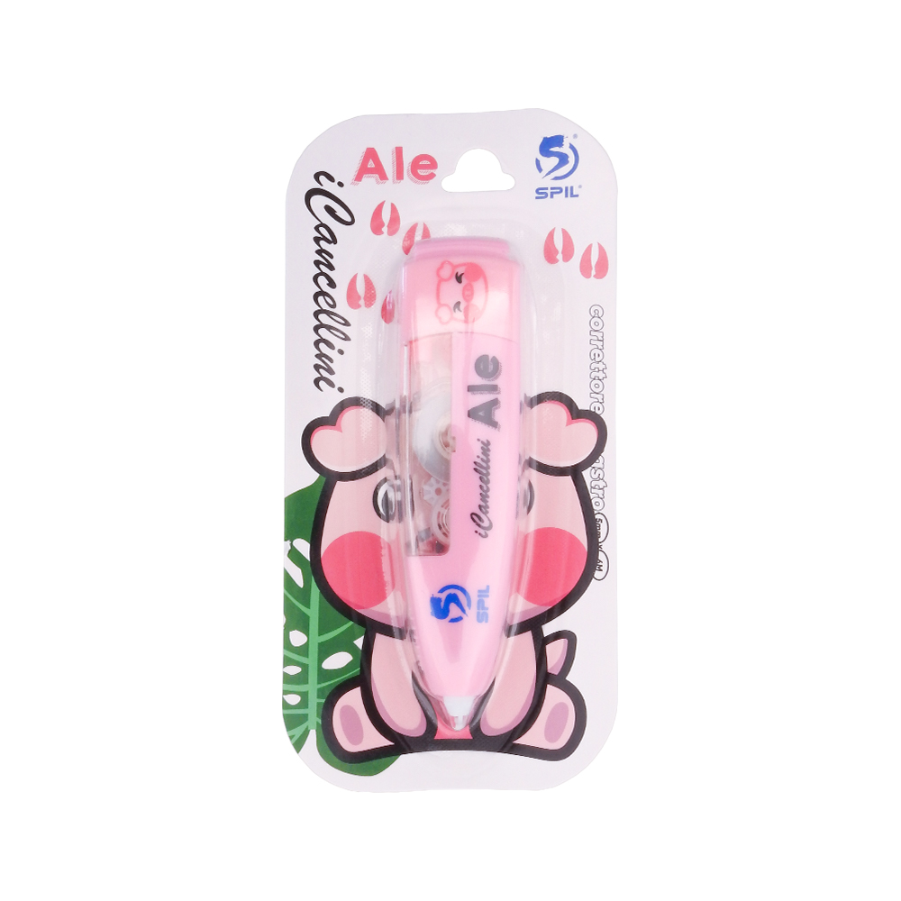 SPIL – Correttore a nastro I CANCELLINI, dimensione 5mm x 6m, punta a scatto. 6 fantasie per bambini e bambine disponibili: Ale maiale – Bra zebra – Mia scimmia – Leo leone – Pin pinguino – Ros rospo. ideali per cancellare i tuoi errori in modo fashion