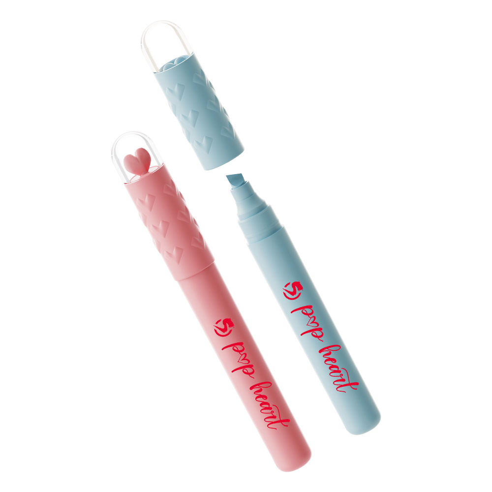 Evidenziatori a punta morbida, con cuore a scomparsa. Un tocco di originalità che rende la scrittura ancora più divertente. Punta morbida, ideale per sottolineare con precisione e comfort. Tappo con cuore a scomparsa: quando l’evidenziatore è inserito, il cuore si mostra, quando lo estrai, il cuore scompare. Design pratico e creativo, perfetto per scuola, ufficio e momenti di studio. Un evidenziatore unico che unisce funzionalità e stile! 8 colori disponibili, 4 fluo: ciliegio, cardo, fiordaliso, salvia e 4 pastel: ciclamino, pesco, narciso, pistacchio. Inchiostro ad asciugatura rapida, punta ultra morbida.