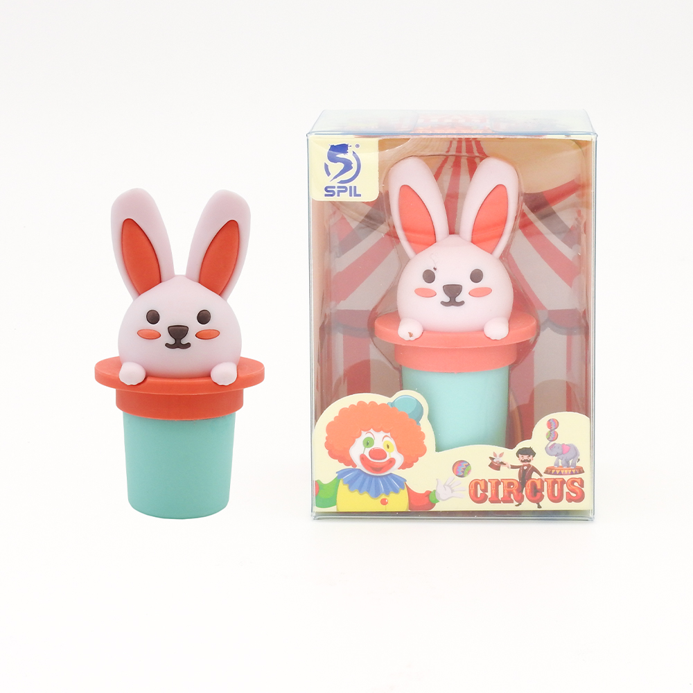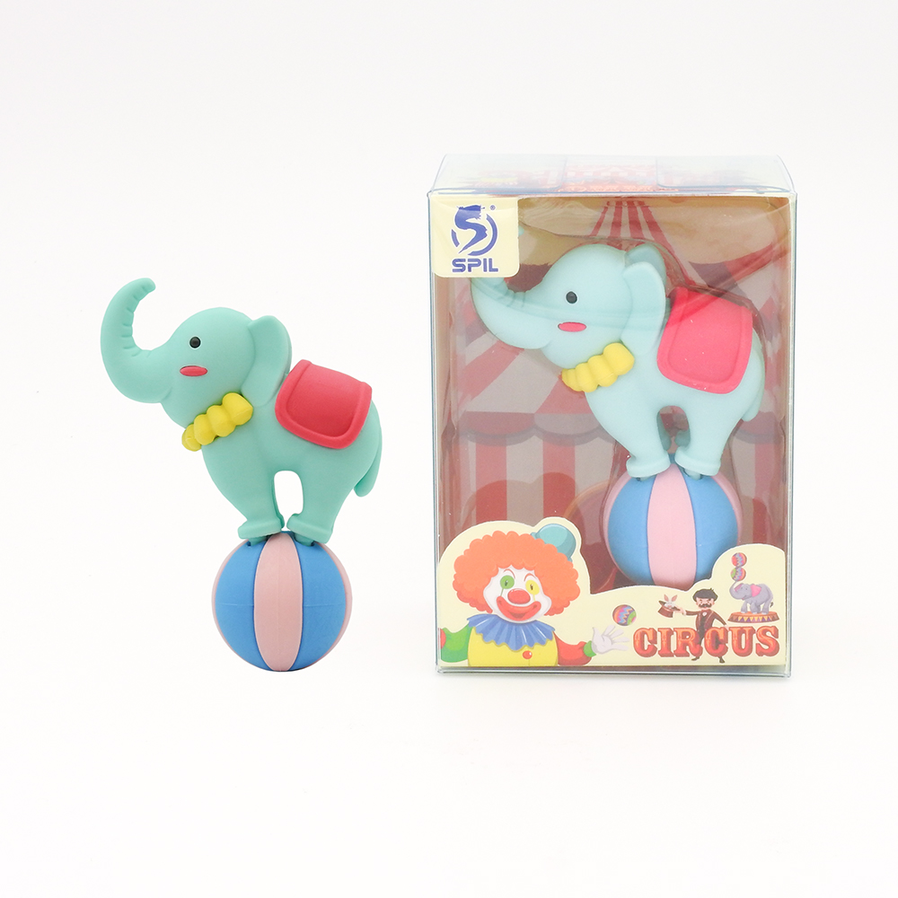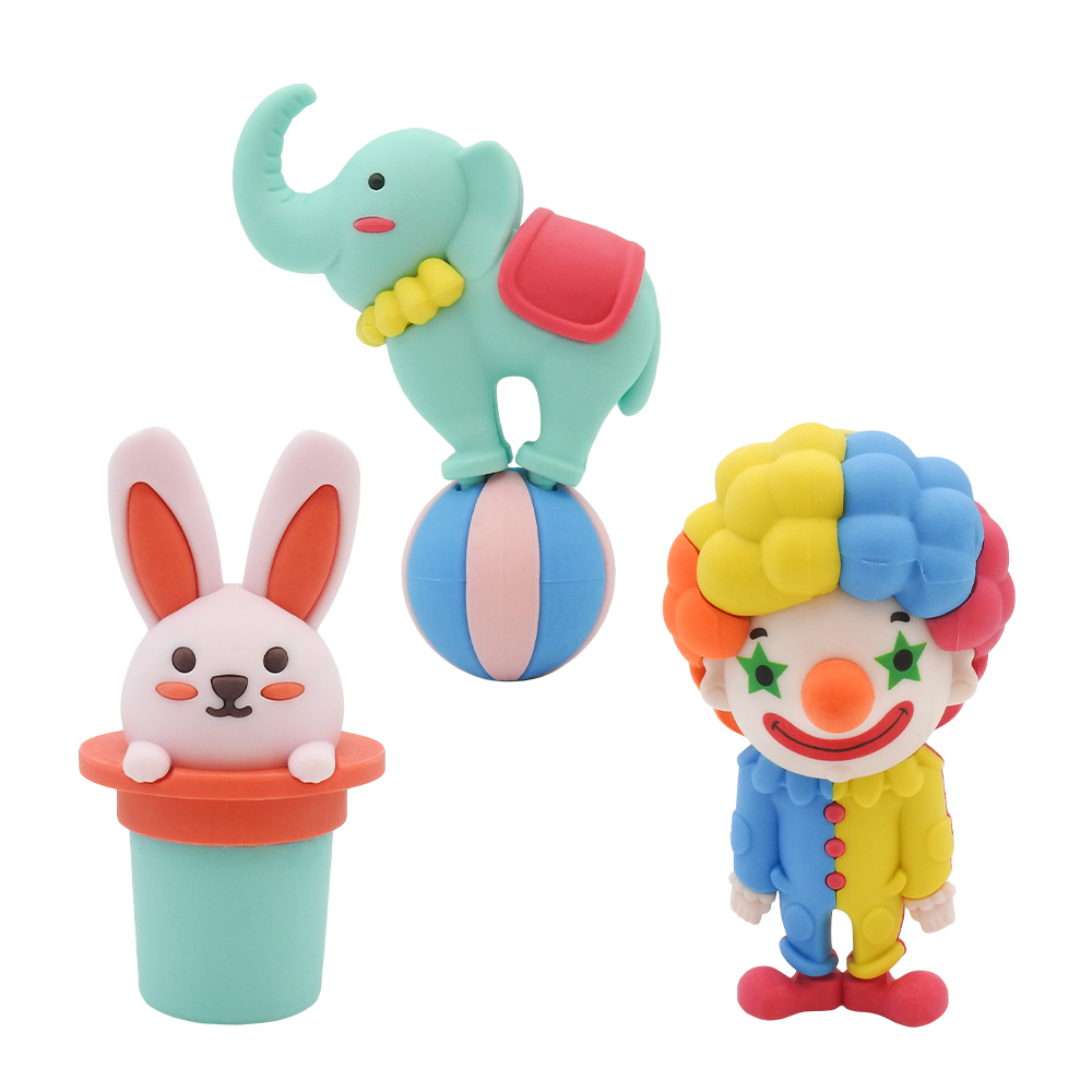 SPIL – Gomma per cancellare in TPR 8cm in 3 fantasie circo: Clown – Coniglio nel cilindro – Elefante giocoliere.