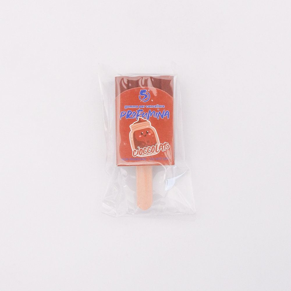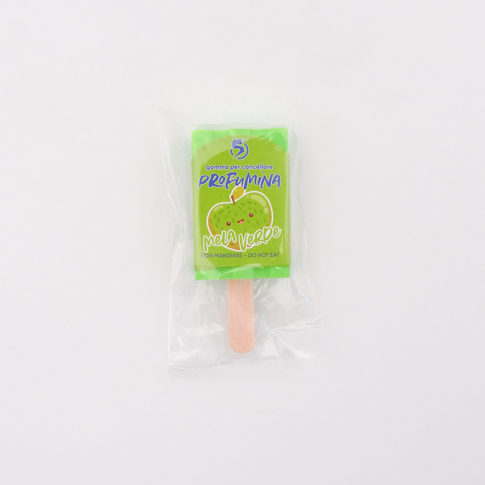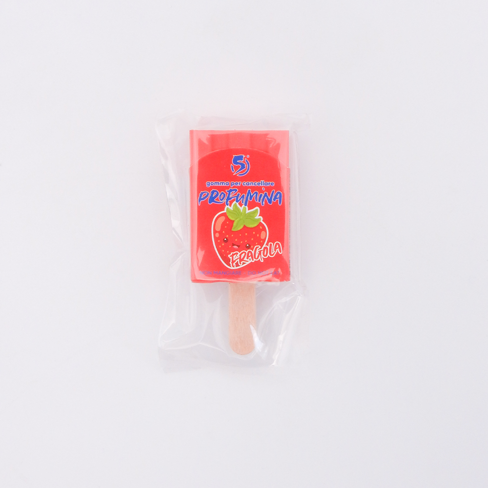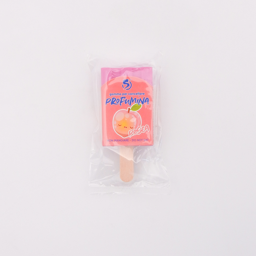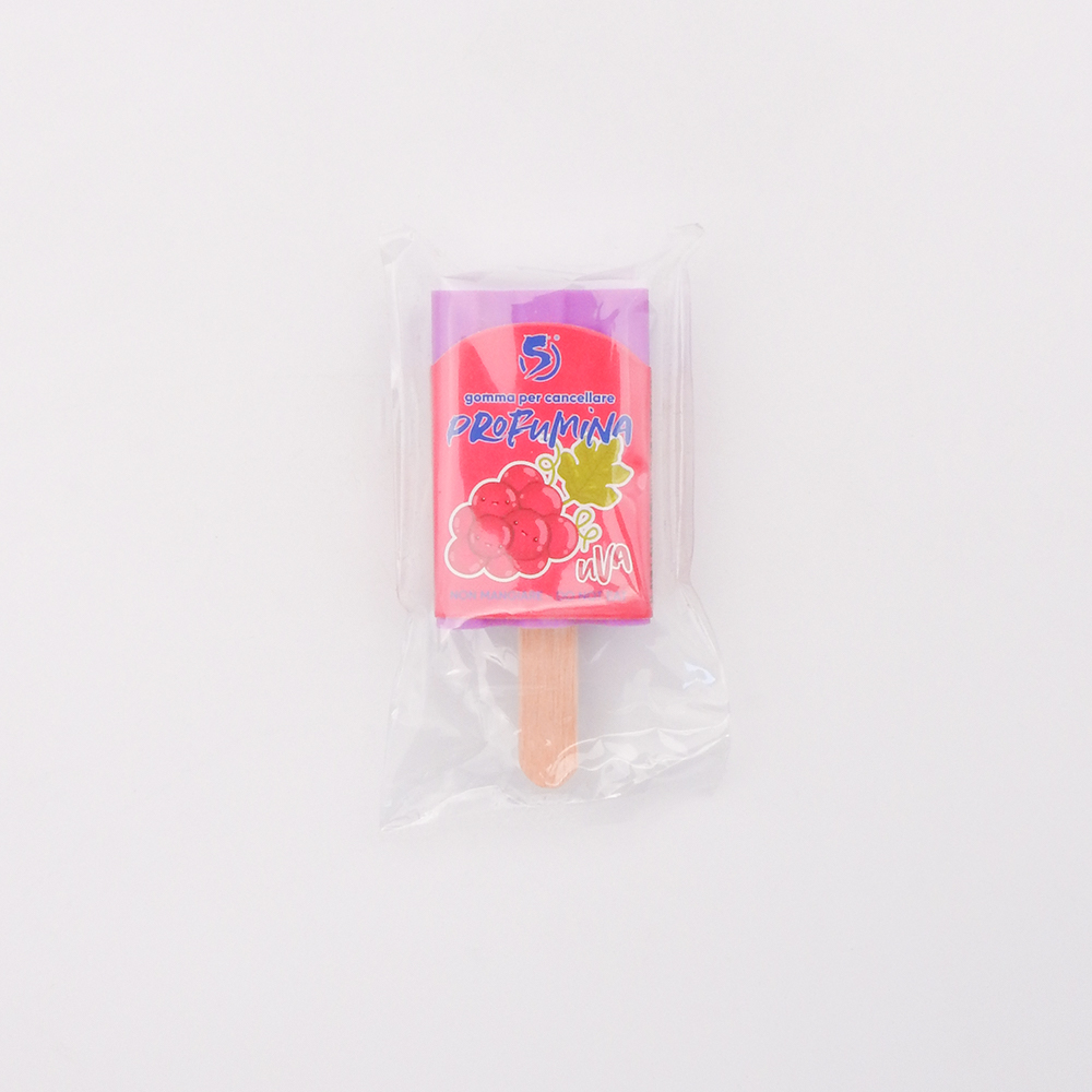 Gomma per cancellare profumata a forma di gelato. In 6 profumazioni: Fragola – Uva – Mela Verde – Arancia – Pesca – Cioccolato.