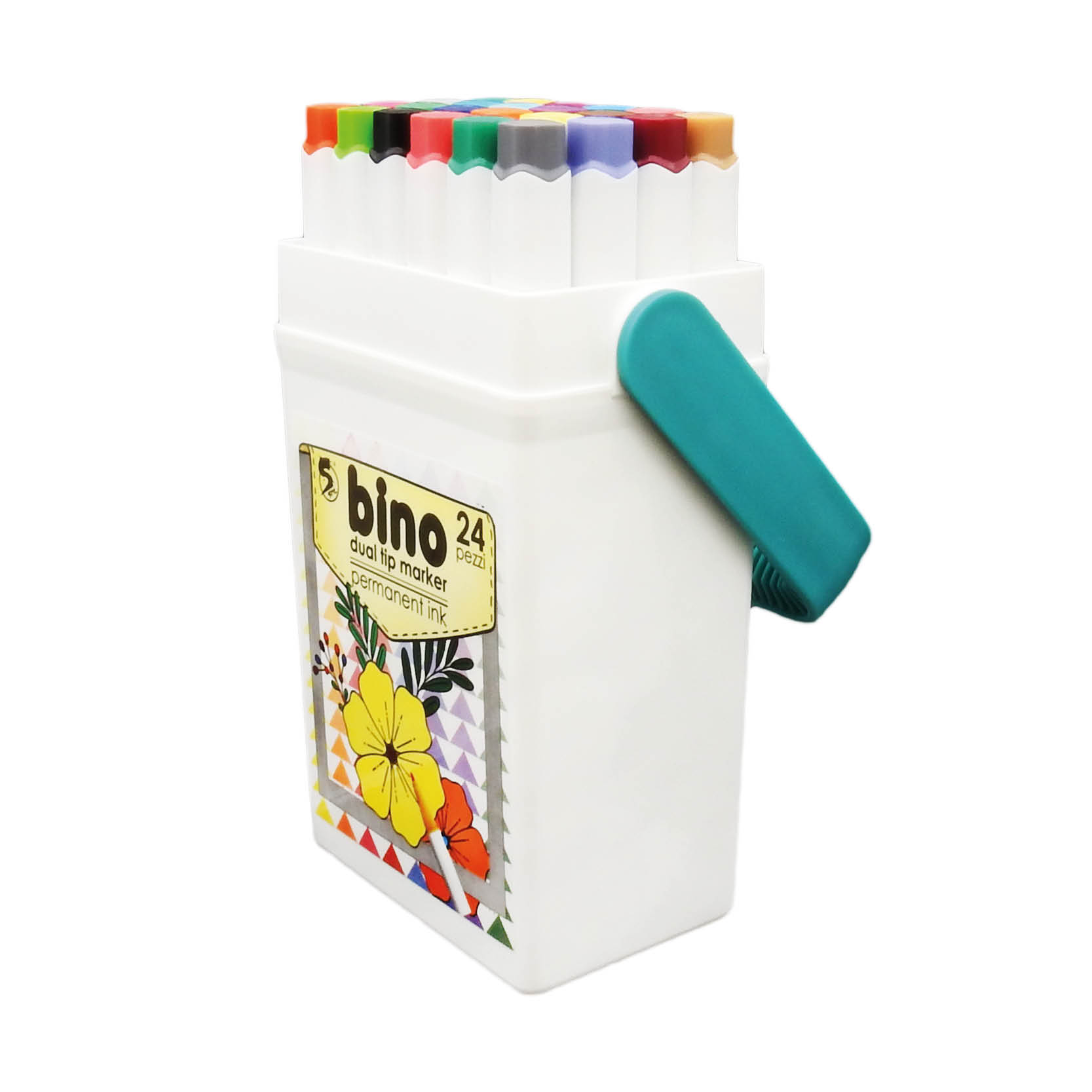 Marcatore con inchiostro permanente a doppia punta: una piatta e una sottile. Colori intensi e brillanti. Inchiostro ad asciugatura rapida. Confezione da 24 pezzi assortiti o da 24 pezzi per singolo colore.