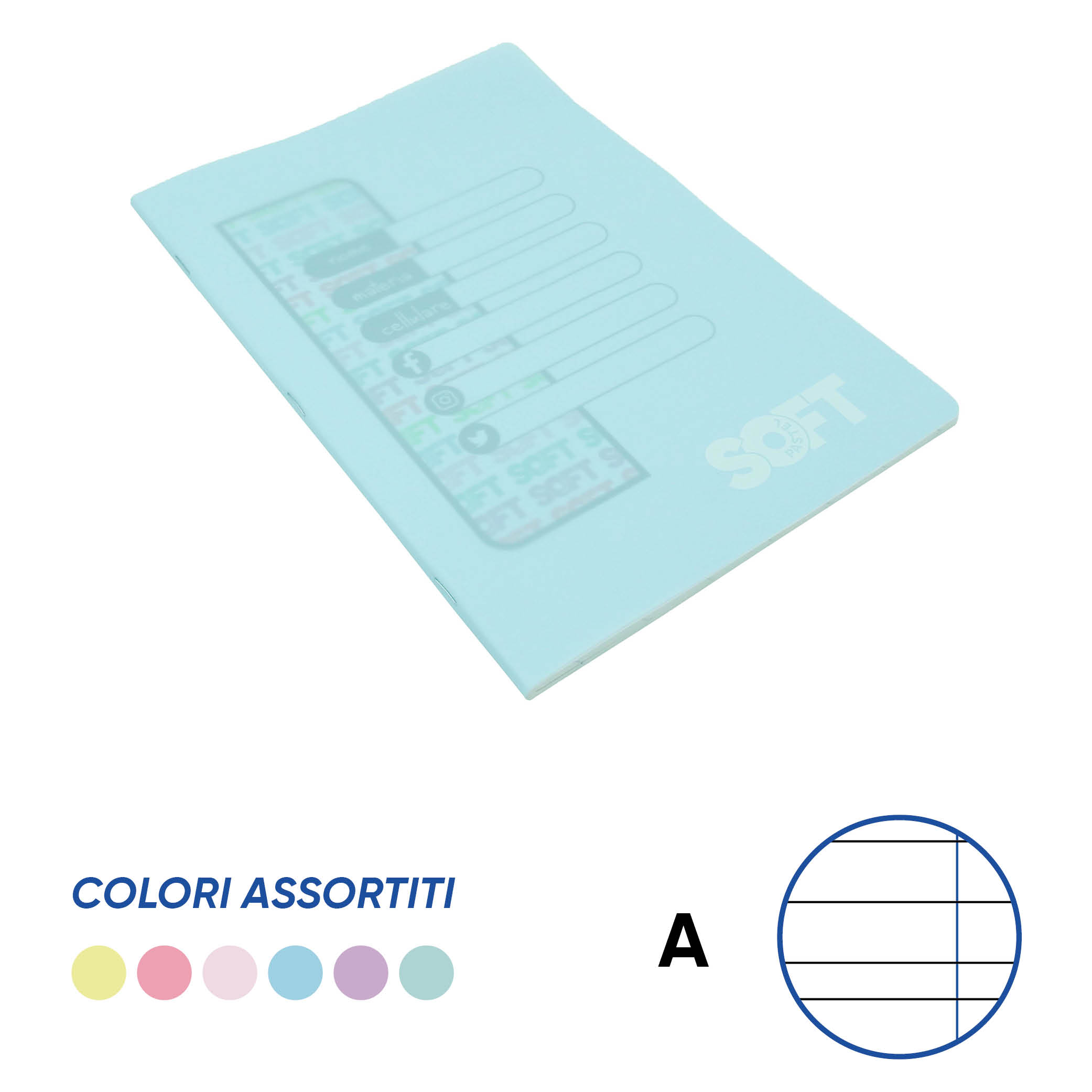 QUADERNO A4 PASTEL SOFT 80 gr. COPERTINA IN PPL Conf. 10 pz