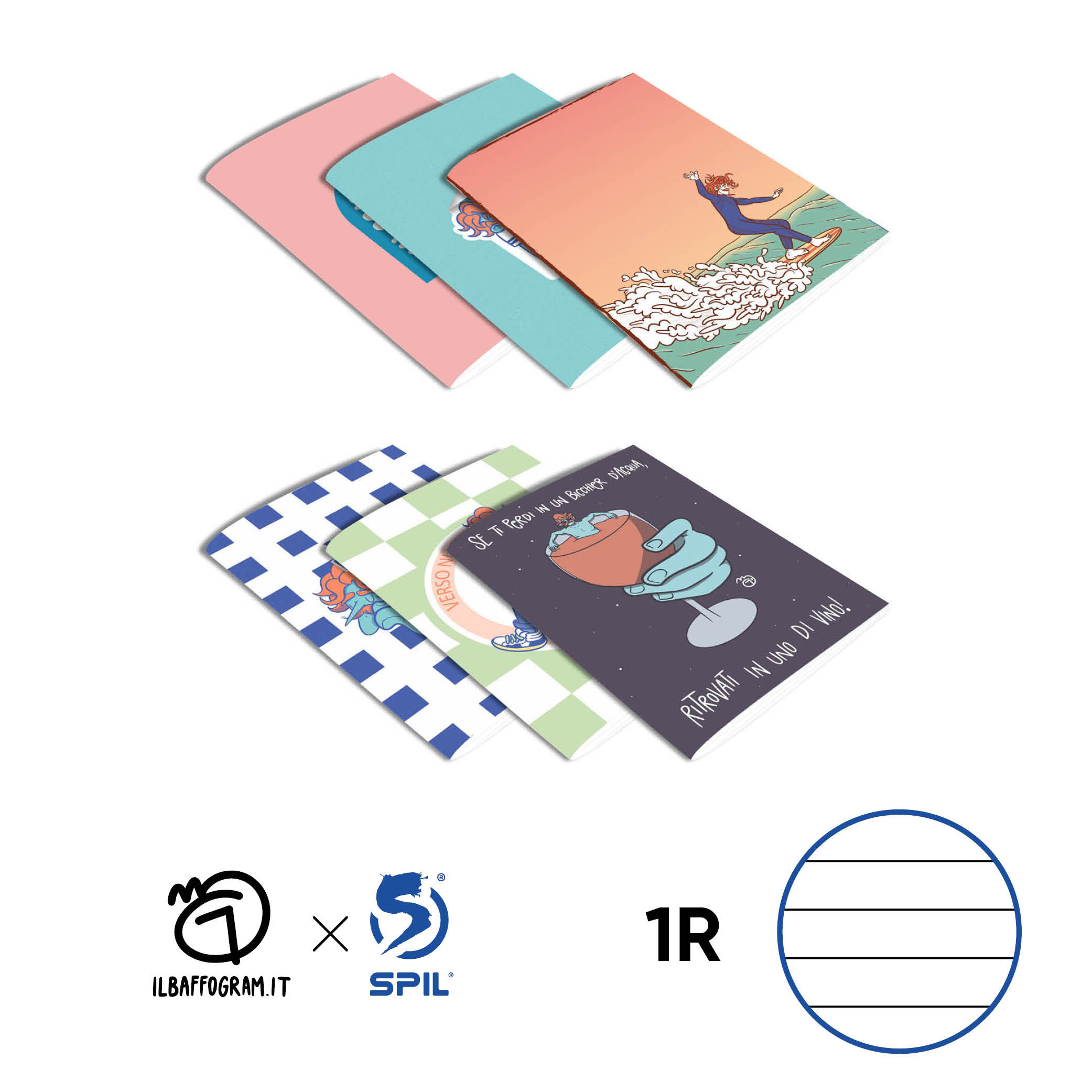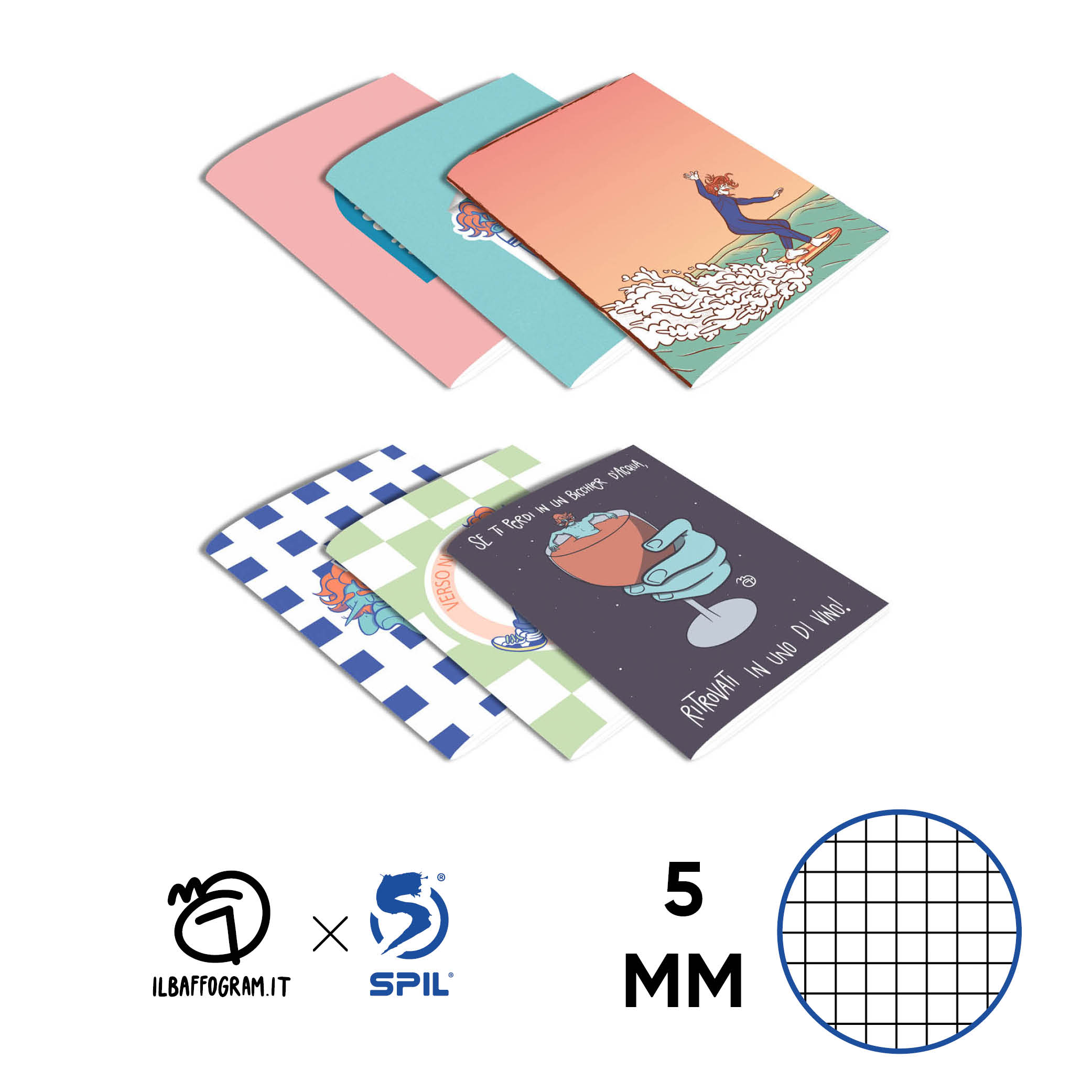 Quaderno Il Baffogram x Spil – dimensioni A4 con carta 100gr. Ideale per ragazzi. Rigature: 5mm – 1R – C – Q – BCO – 4mm