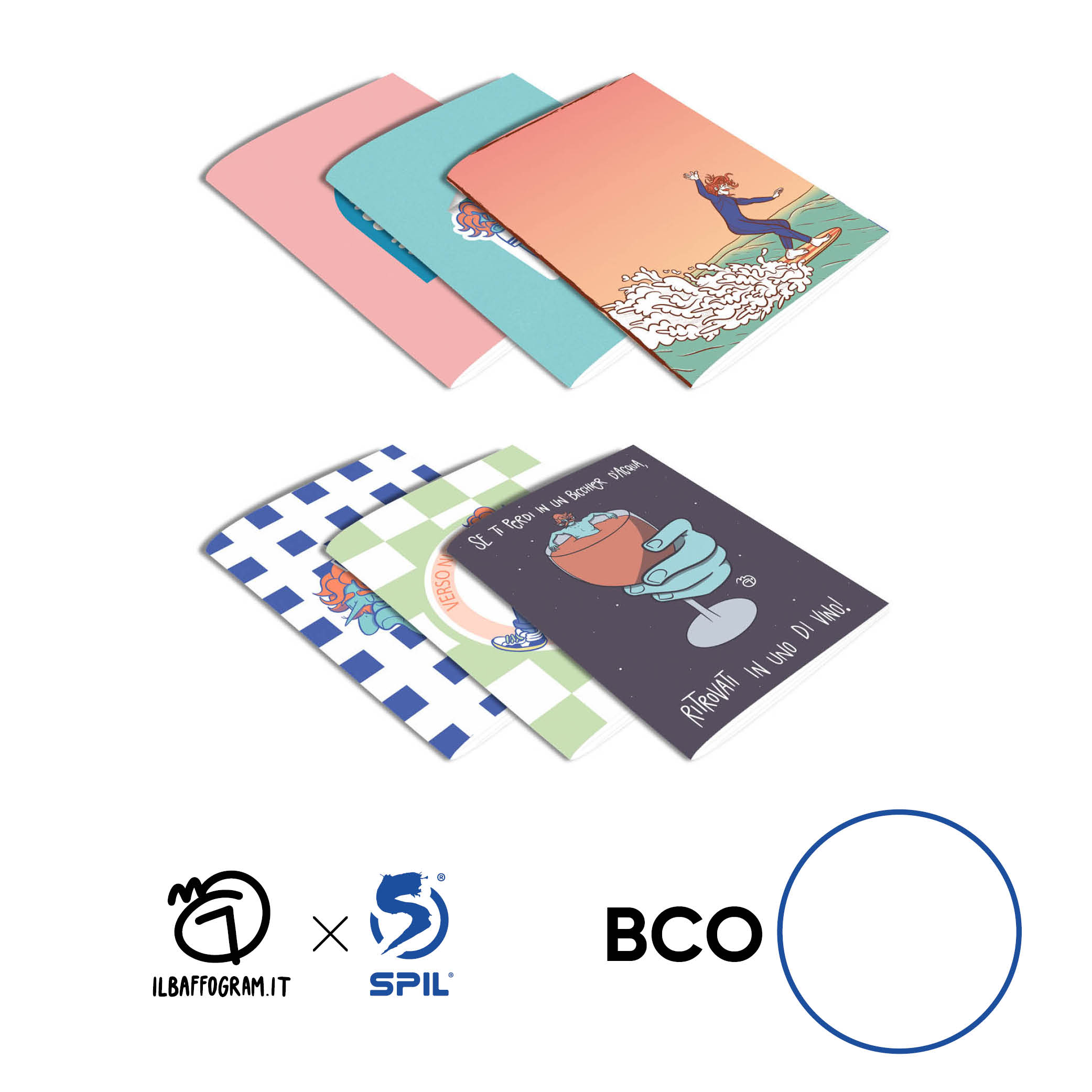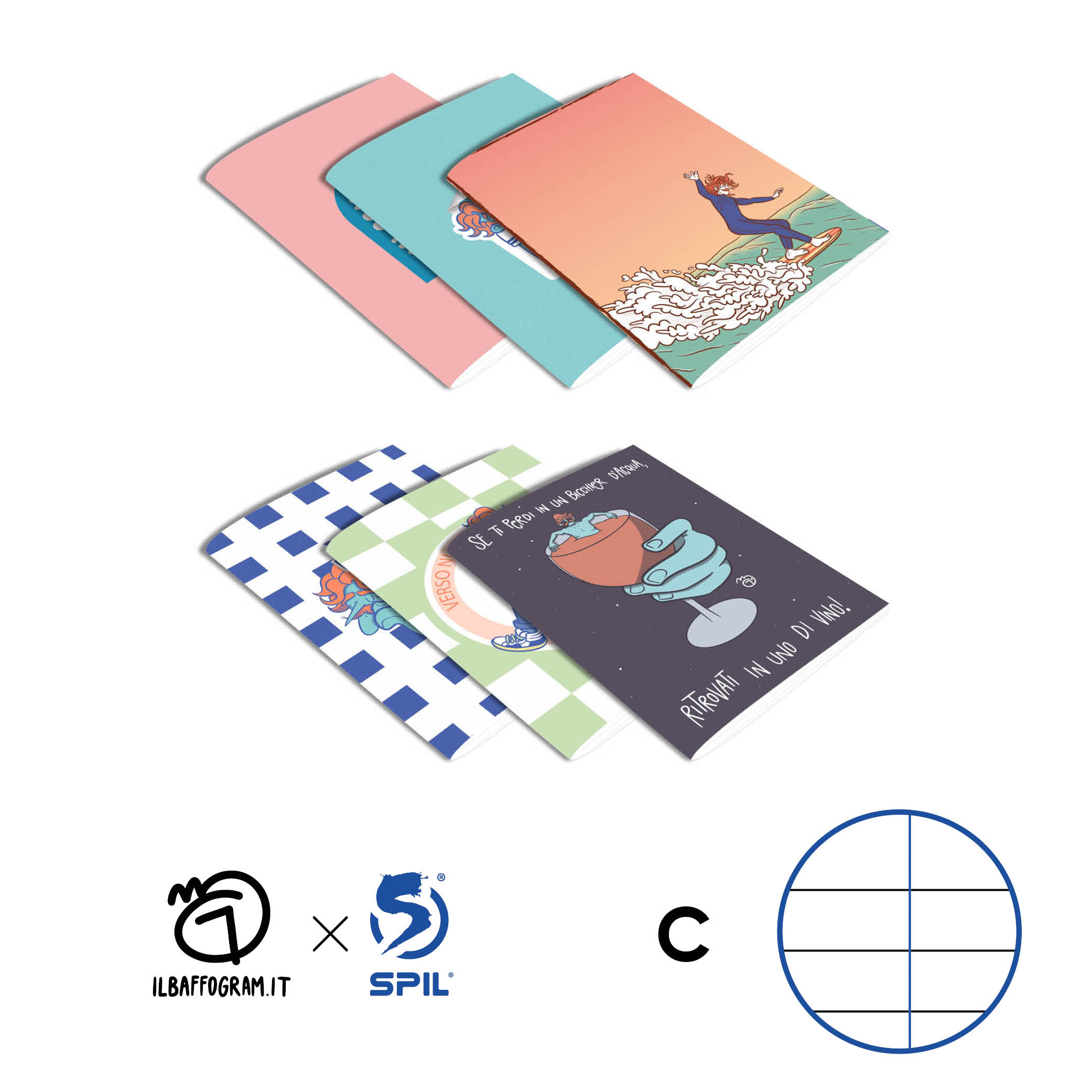 Quaderno Il Baffogram x Spil – dimensioni A4 con carta 100gr. Ideale per ragazzo e ragazza. Rigature: 5mm – 1R – C – Q – BCO – 4mm