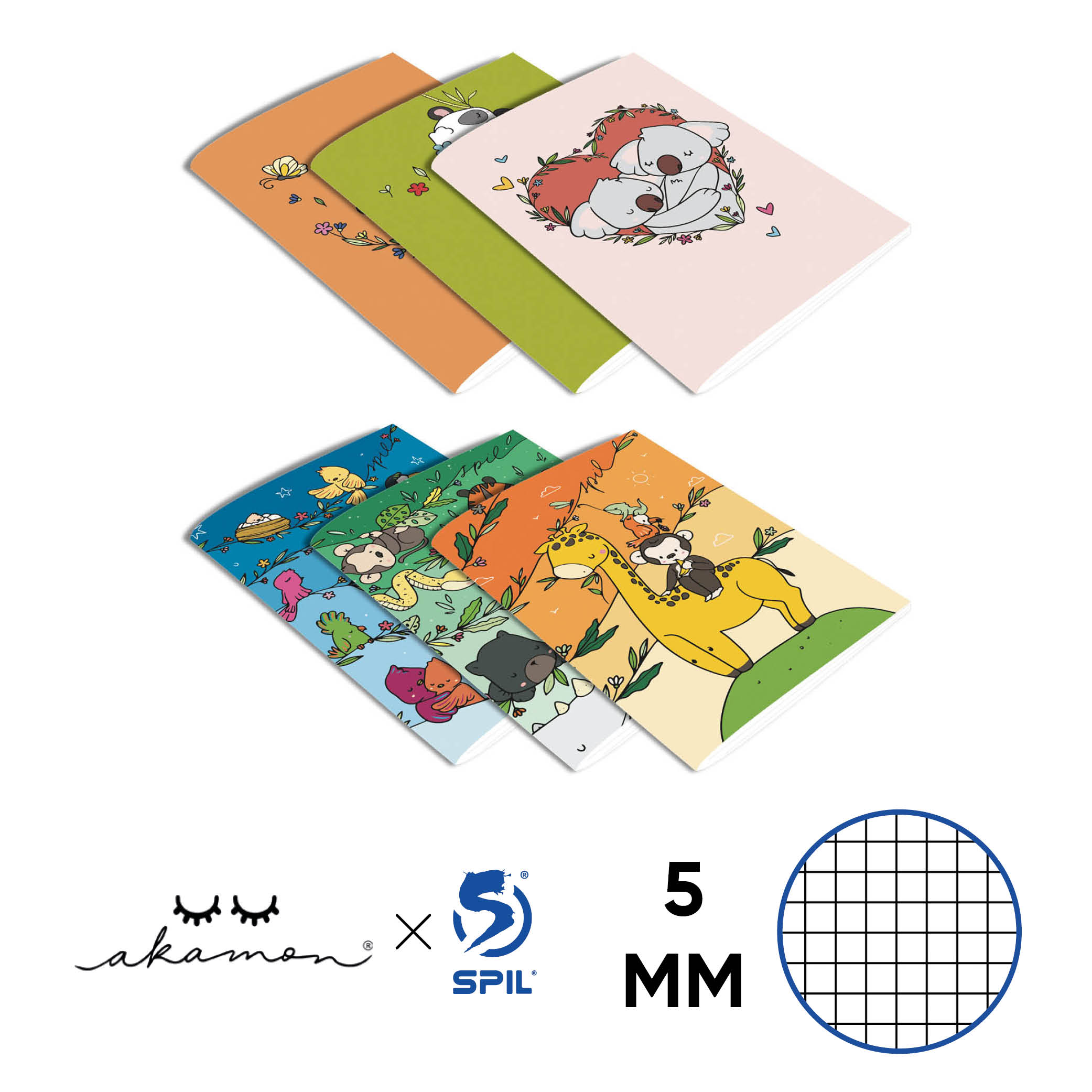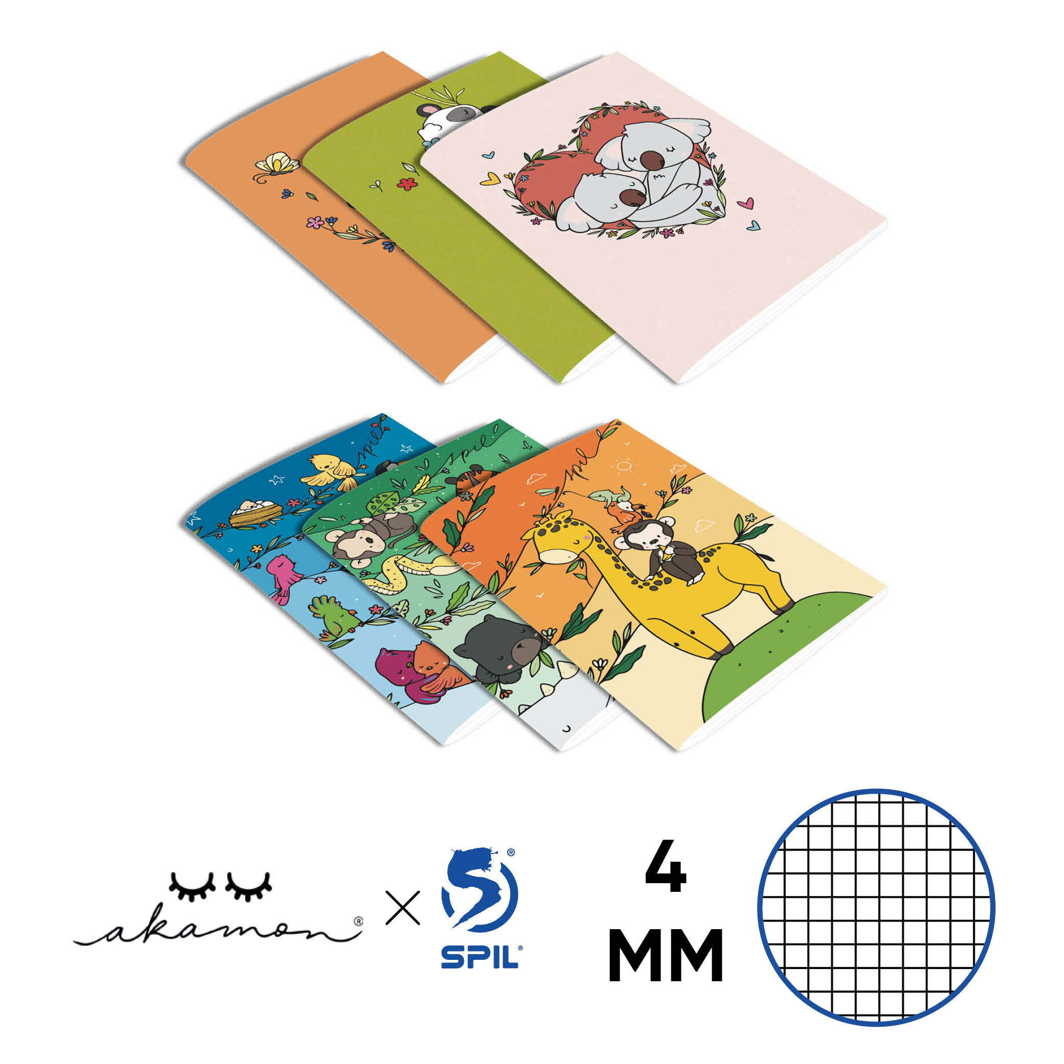 Quaderno Akamon x Spil – Life in the Jungle – dimensioni A4 con carta 100gr. Ideale per bimbo e bimba. Rigature: 10mm – 5mm – 1R – A – B – C – Q.