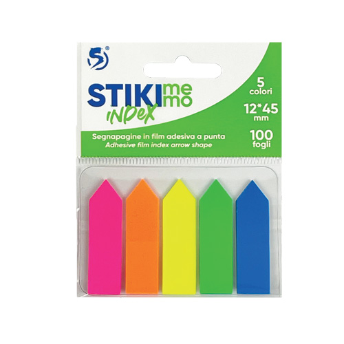 SPIL – Segnapagine in film adesivo a forma di freccia, formato 12 x 45 mm, 100 fogli in 5 colori.