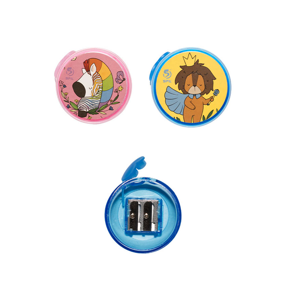 Temperamatite linea Akamon in metallo, 2 fori con serbatoio. 2 fantasie, bimbo e bimba. Fantasia: Leone – Zebra